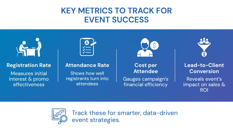 - Cost per Attendee: This helps evaluate the financial efficiency of your campaign by dividing total event spend by the number of attendees.