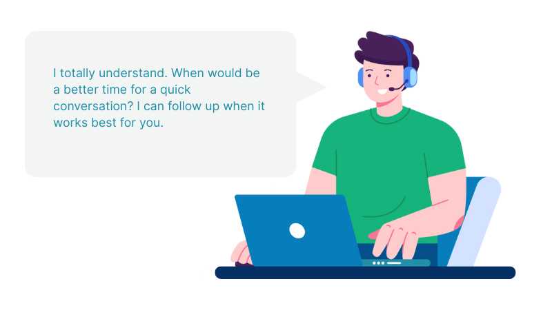 “I totally understand. When would be a better time for a quick conversation? I can follow up when it works best for you.”